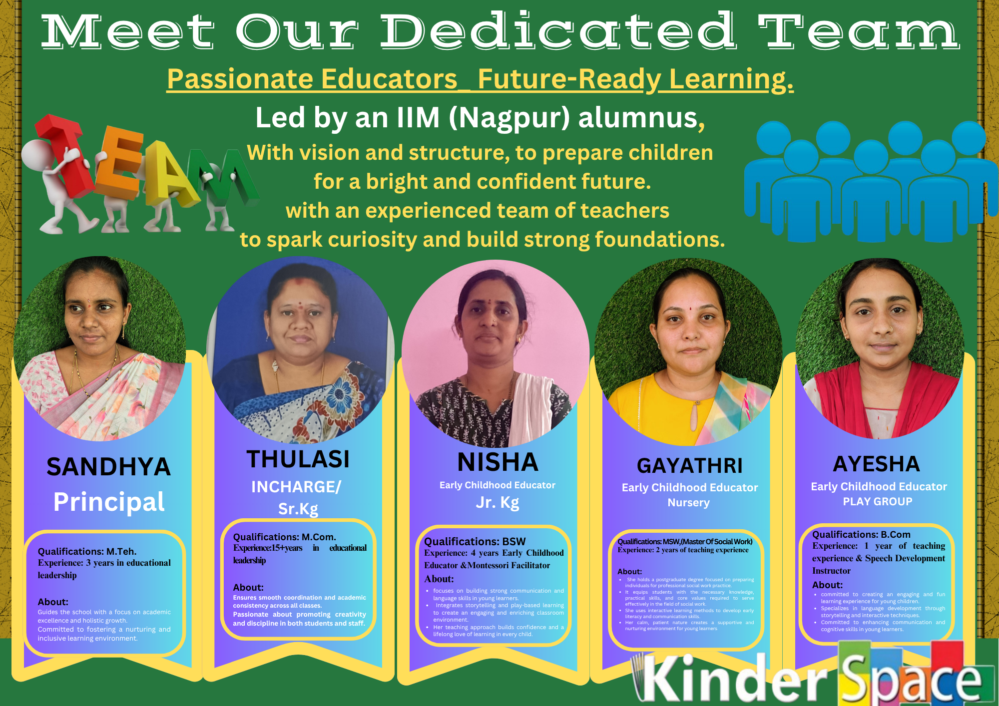 Kinder Space is a trusted preschool and day care in Kanuru, Vijayawada, focused on nurturing young minds through love, play, and meaningful learning experiences.